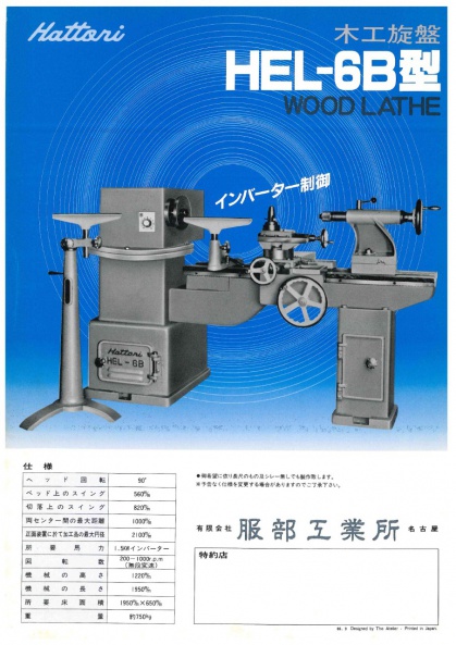 服部工業の木工旋盤 HEL-6です。