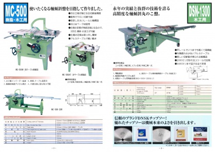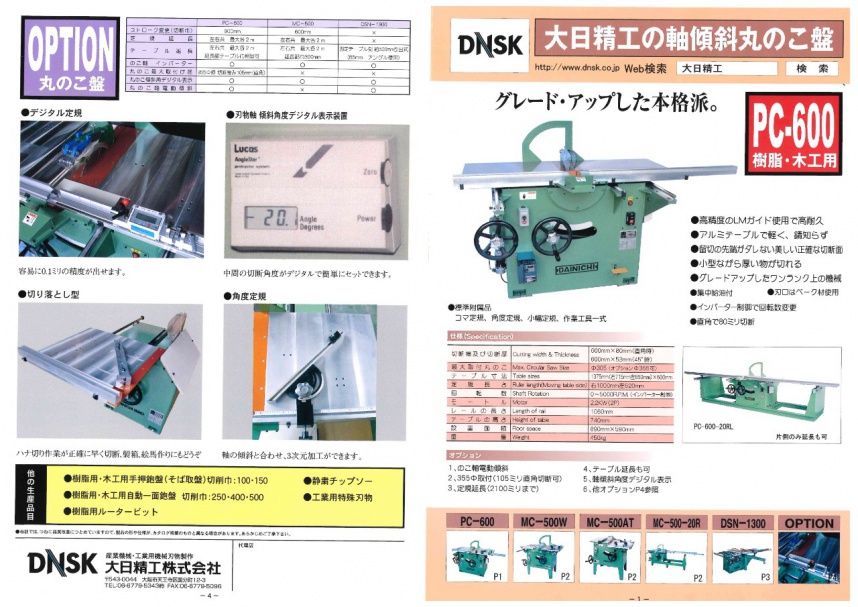 大日精工さんといえば、以前ご紹介した「そば取鉋盤」も有名ですが、実は軸傾斜丸のこ盤のラインナップもとても豊富なんです。