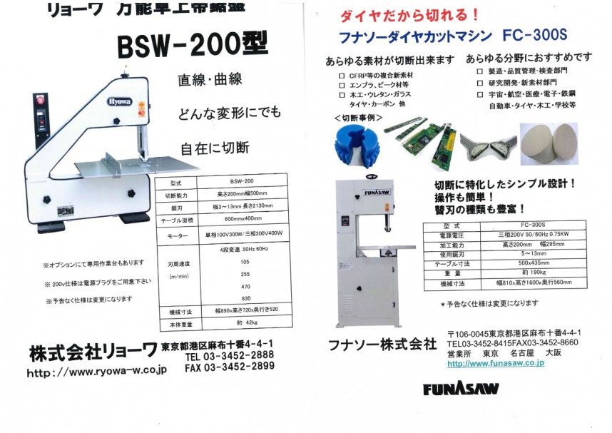 木だけじゃない!あらゆる素材を切るフナソーの万能バンドソーFC-300S