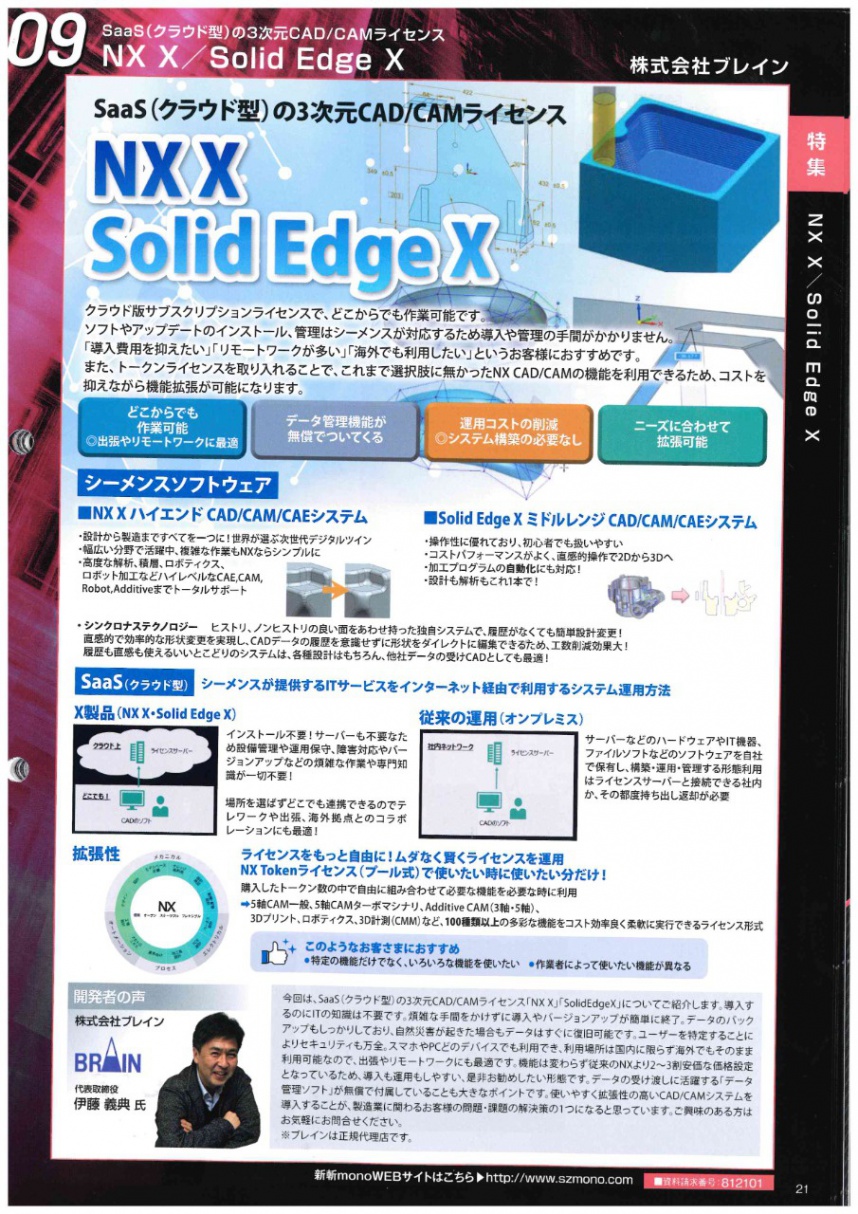 今回は、ジーネットの「新斬モノ」に掲載されていた 株式会社ブレインさん の「NX X/Solid Edge X」をご紹介します。