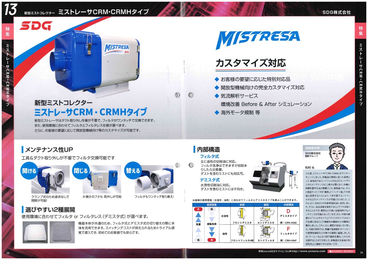 今回は、SDG株式会社の新型ミストコレクター「ミストレーサCRM・CRMHタイプ」をご紹介します。