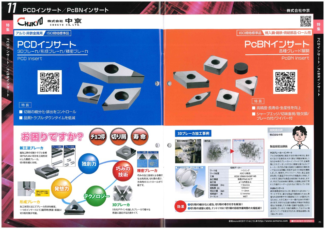 今回は、株式会社中京さんの「PCDインサート」と「PcBNインサート」をご紹介します。