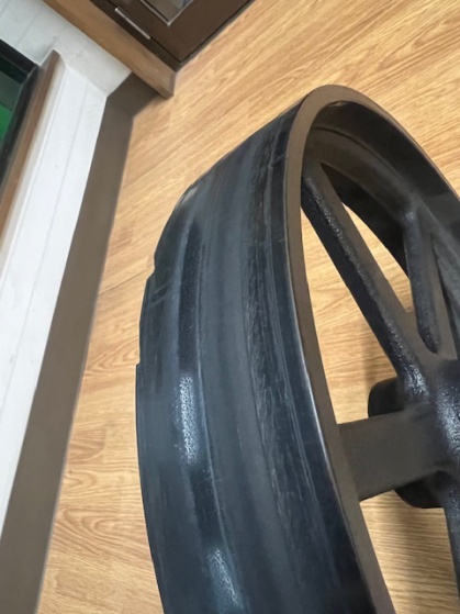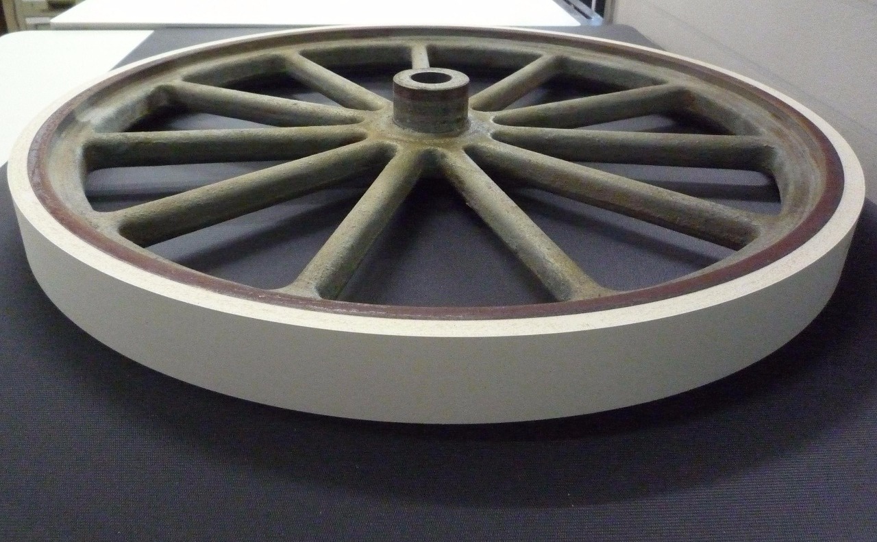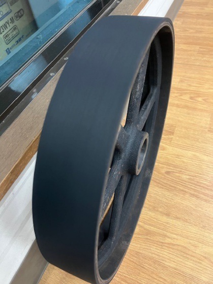 黒ゴム+クラウン加工|バンドソー プーリーゴム張り替え
